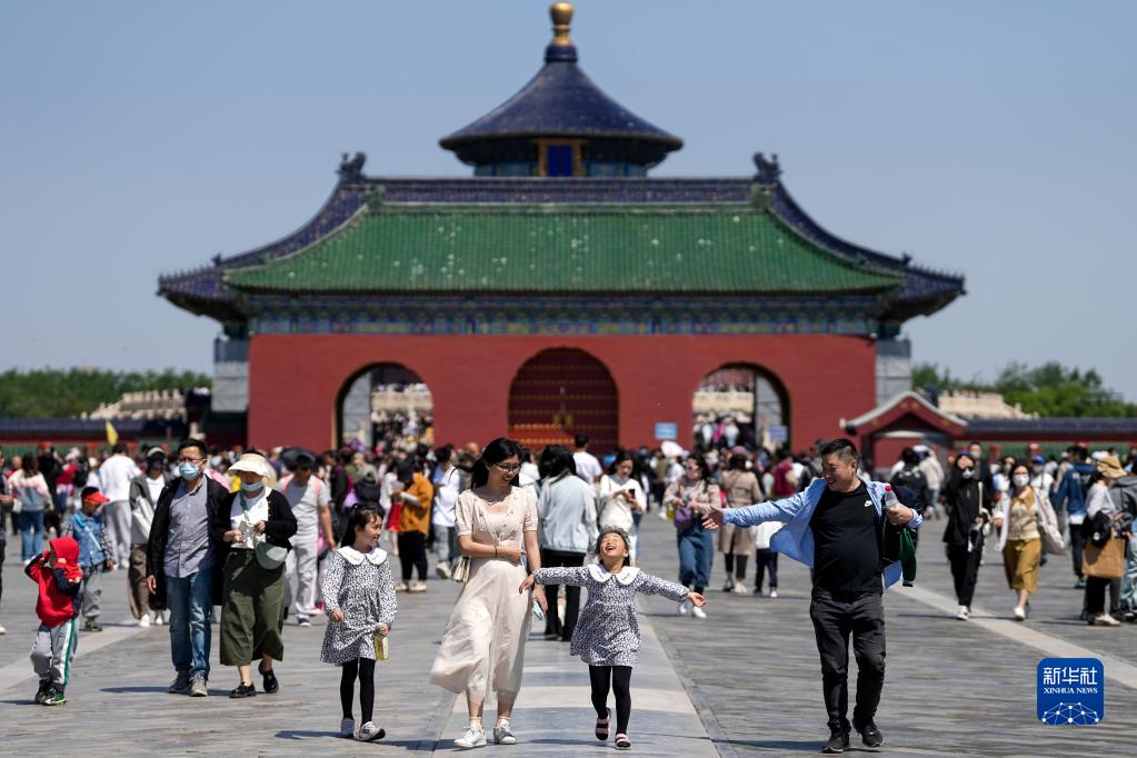 4月29日,游客在北京天壇公園參觀(guān)游覽。