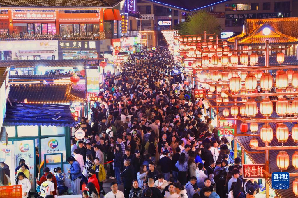 4月30日,游客在山東省威海市韓樂(lè )坊夜市品美食、逛夜市。