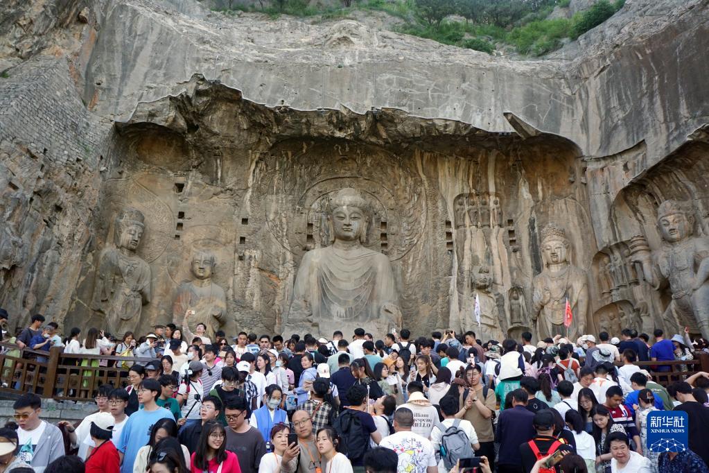 4月30日,游客在河南洛陽(yáng)龍門(mén)石窟景區游覽。