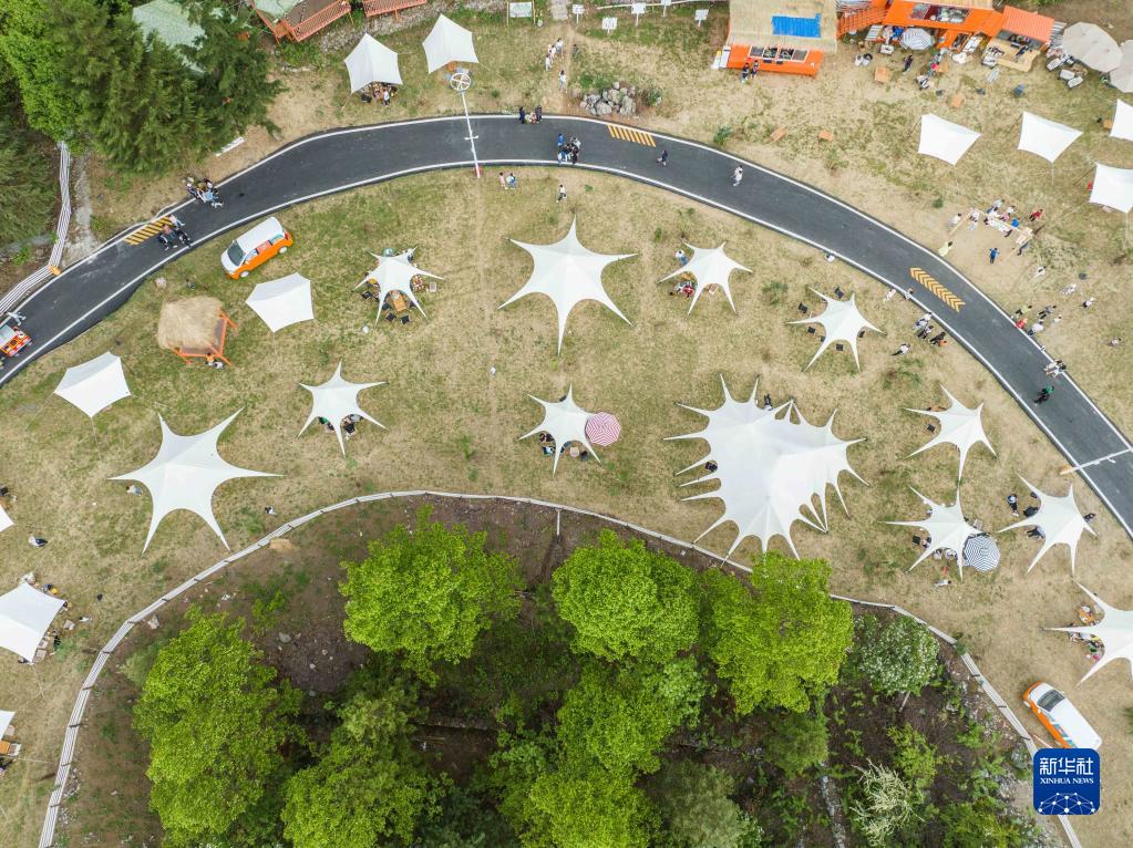 5月1日,游客在貴州省畢節市赫章縣硐上村游玩(無(wú)人機照片)。