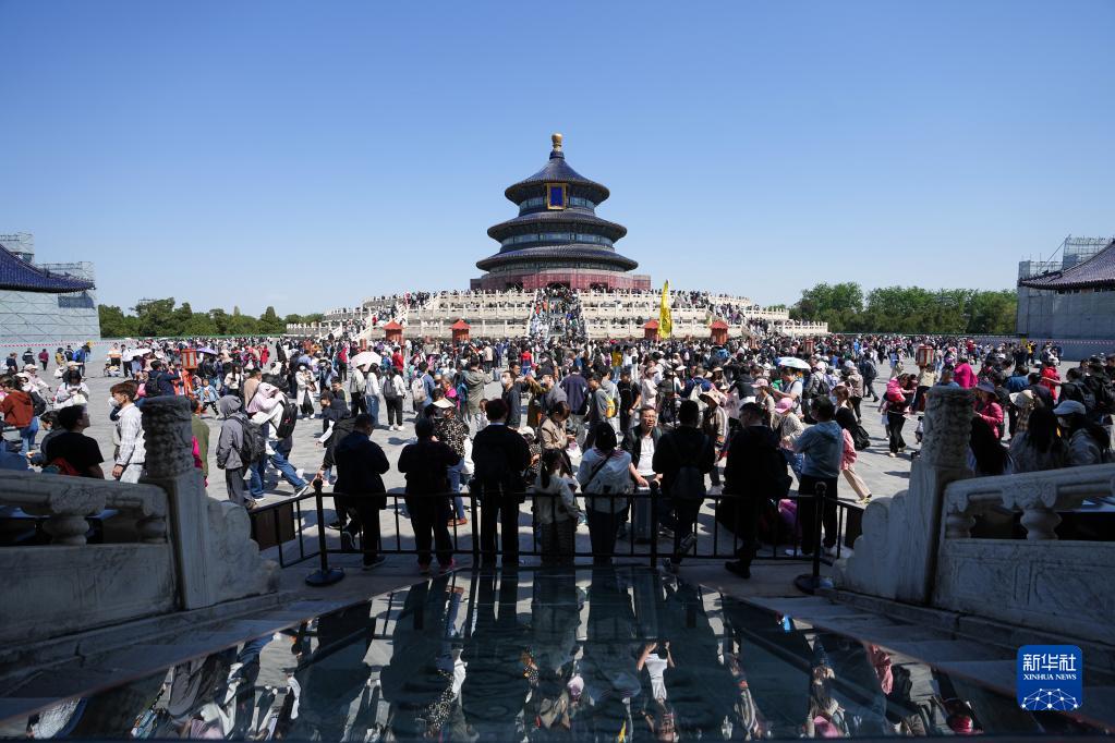 4月29日,游客在北京天壇公園參觀(guān)游覽。