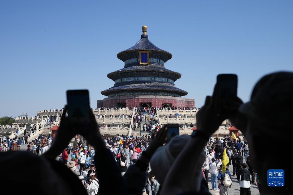 4月29日,游客在北京天壇公園參觀(guān)游覽。