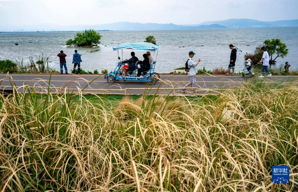 4月30日,游客沿著(zhù)小漁村旁的滇池綠道游覽。