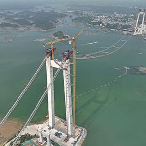 龍門(mén)大橋項目全長(cháng)約7.6公里,其中主橋長(cháng)1198米,采用主跨1098米單跨吊全漂浮體系鋼箱梁懸索橋,這一項目是國道G228丹東至東興廣西濱海公路主線(xiàn)的重要組成部分,也是連接廣西北部灣經(jīng)濟區的重要通道。