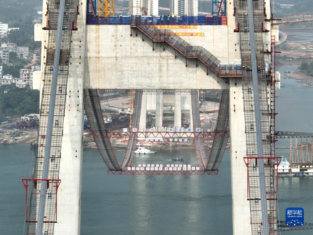 近日,位于欽州市的廣西最長(cháng)跨海大橋——龍門(mén)大橋項目建設全面進(jìn)入上部結構施工階段,其中龍門(mén)大橋主通航孔橋已完成主纜的架設,目前正在進(jìn)行緊纜施工。