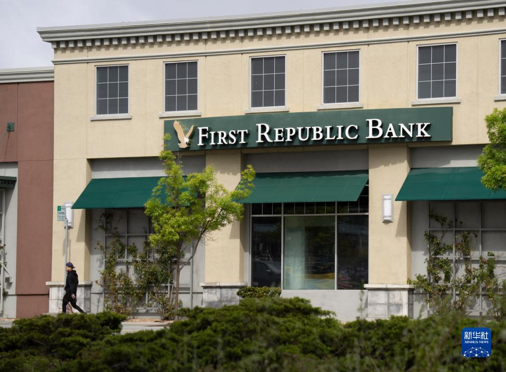 這是5月1日在美國加利福尼亞州米爾布雷市拍攝的一家第一共和銀行。