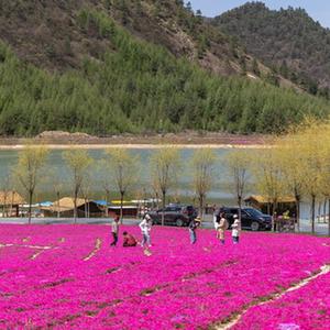 5月1日,在紅池壩國家森林公園,游客觀(guān)賞盛開(kāi)的芝櫻花。