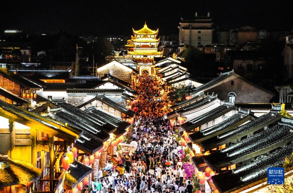 5月1日,四川省涼山彝族自治州西昌市建昌古城游人如織。