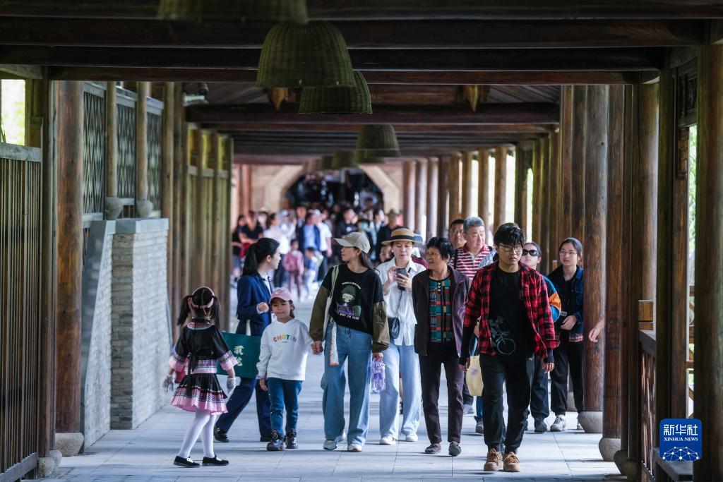 5月2日,游客進(jìn)入濮院時(shí)尚古鎮內游覽。