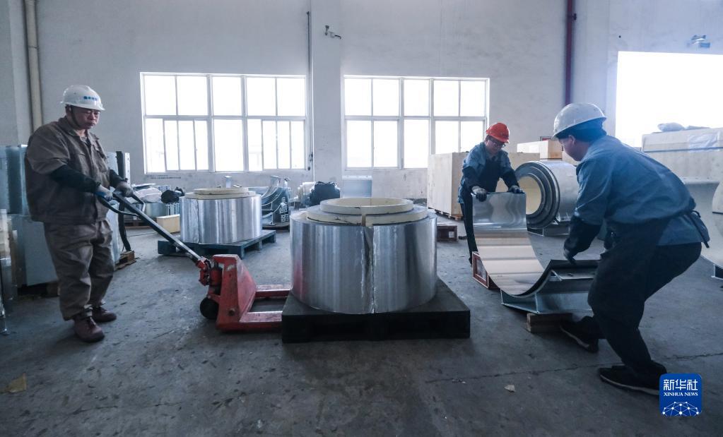 5月2日,在位于浙江省嘉興市秀洲區王店鎮的浙江振申絕熱科技股份有限公司聚氨酯車(chē)間內,工人在進(jìn)行管托安裝工序。