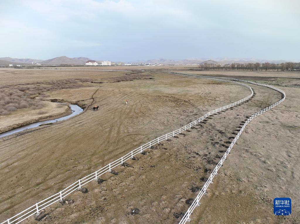 5月2日,河北省承德市豐寧滿(mǎn)族自治縣大灘鎮扎拉營(yíng)村的護林員在海留圖國家濕地公園巡邏(無(wú)人機照片)。