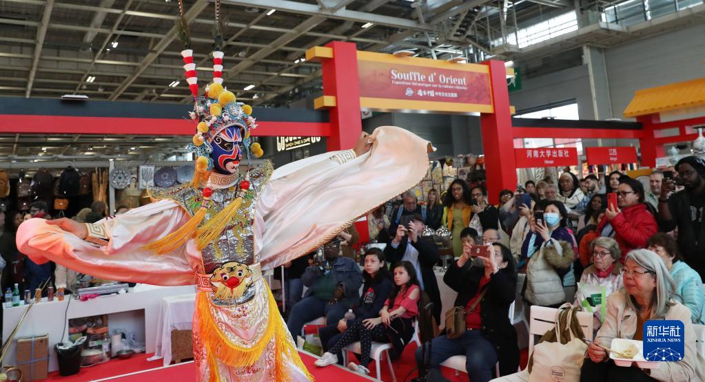 5月2日,在法國巴黎凡爾賽門(mén)展覽中心舉辦的巴黎博覽會(huì )上,演員在“遇·鑒中國——中華文化主題展”上表演川劇“變臉”。