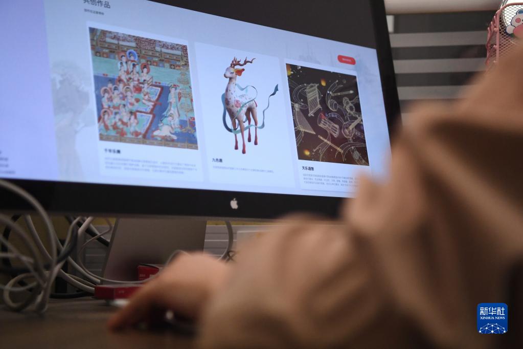 敦煌研究院文物數字化保護團隊的韓雪在查閱“數字敦煌”資源庫(4月25日攝)。