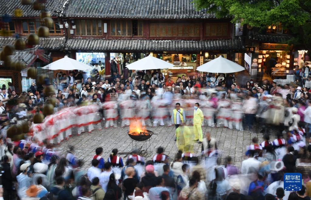 5月2日晚,游人在云南麗江古城游玩。