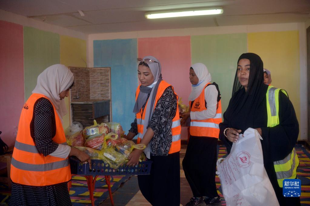 5月2日,在埃及南部阿斯旺省,工作人員為逃離蘇丹進(jìn)入埃及的難民準備救濟包裹。