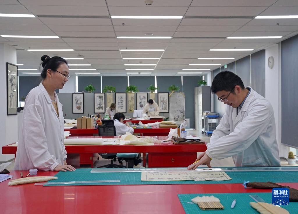 4月28日,在上海市檔案館的保護技術(shù)部,年輕的檔案修復師們在工作中。