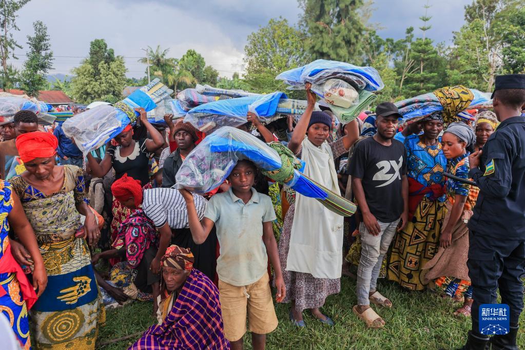 5月4日,災民在盧旺達西方省領(lǐng)取賑災物資。
