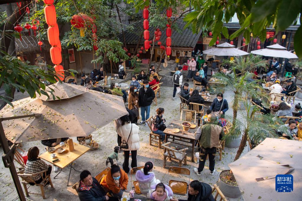 2022年12月24日,在位于重慶解放碑商圈的景點(diǎn)山城巷,市民游客在一家特色小店內消費。