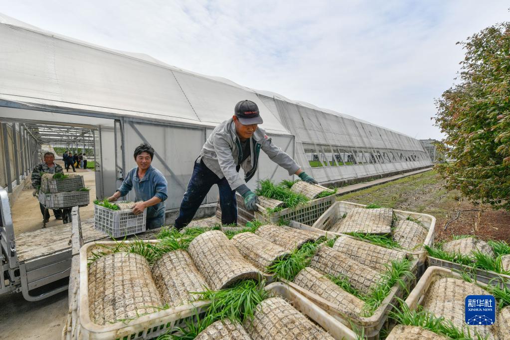 5月5日,在天津市優(yōu)質(zhì)農產(chǎn)品開(kāi)發(fā)示范中心,工人將秧苗裝車(chē)。