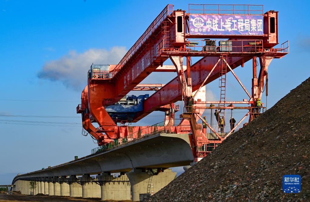 包銀高鐵內蒙古段首座跨鐵路特大橋箱梁架設完成