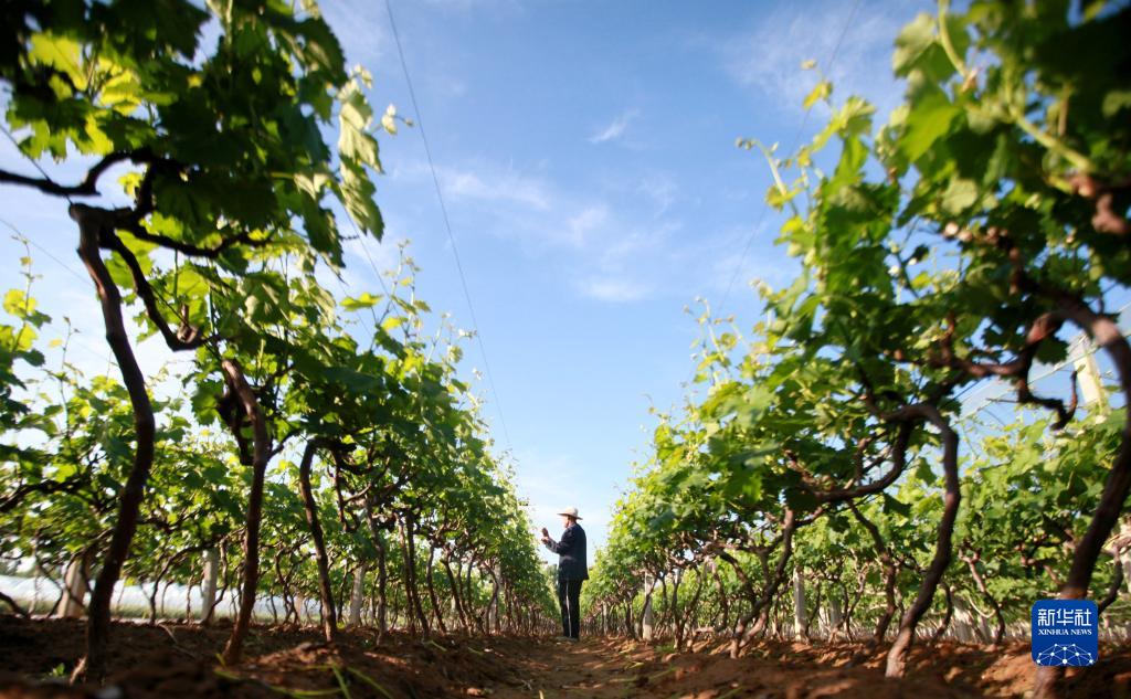 5月6日,山東省臨沂市平邑縣地方鎮的農民在田間管理葡萄。