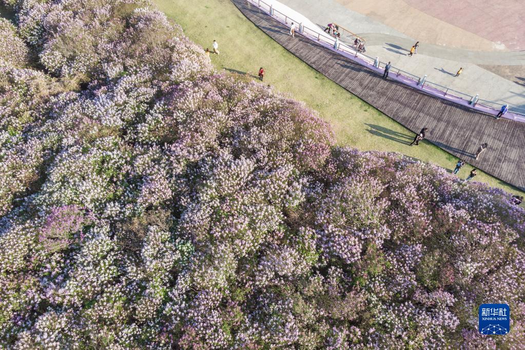 5月6日,游客在哈爾濱丁香公園賞花游玩(無(wú)人機照片)。