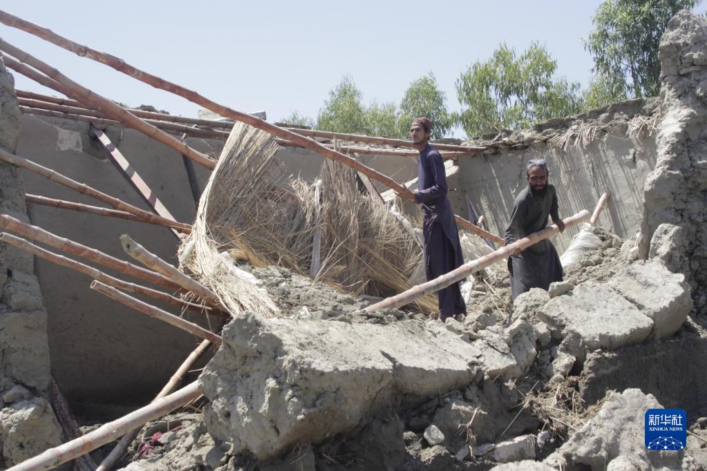 5月6日,人們在阿富汗楠格哈爾省清理遭強降雨和洪水損毀的房屋廢墟。
