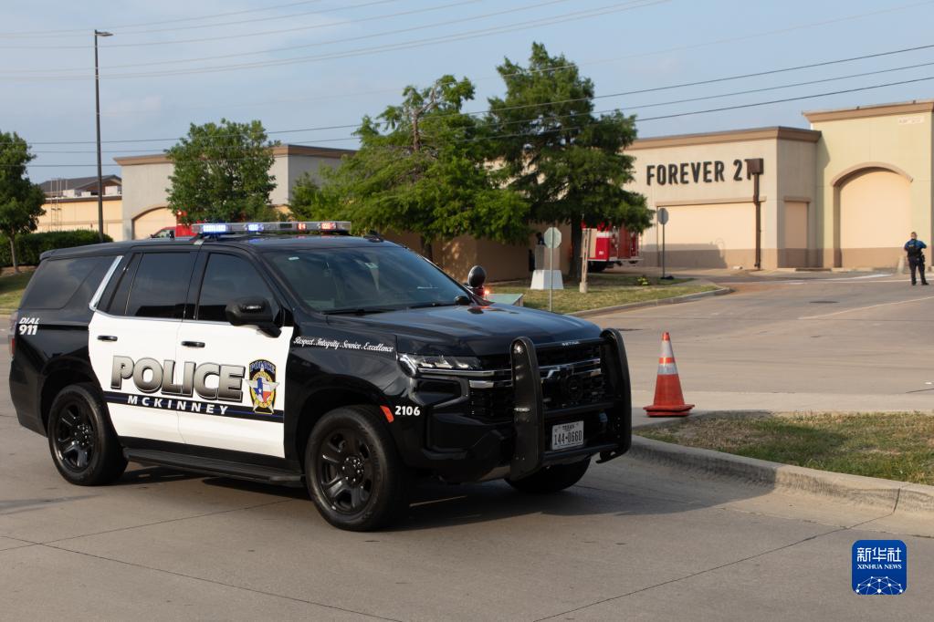 5月6日,警車(chē)停在美國得克薩斯州達拉斯近郊發(fā)生槍擊事件的購物中心附近。