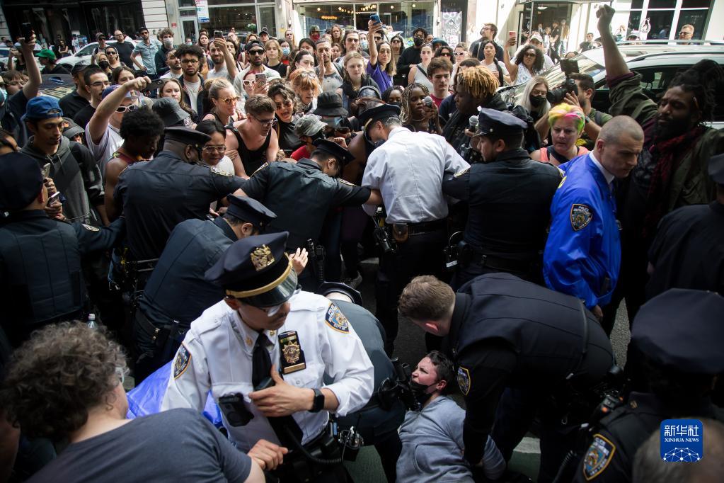 5月6日,在美國紐約,警察與抗議者發(fā)生沖突。