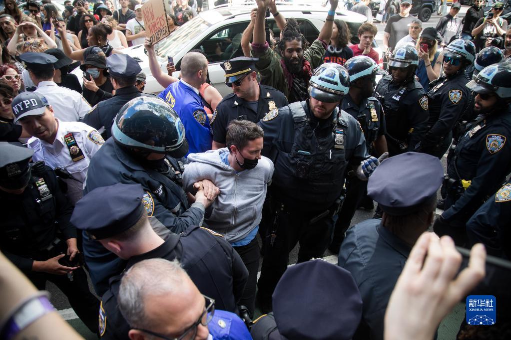 5月6日,在美國紐約,警察與抗議者發(fā)生沖突。