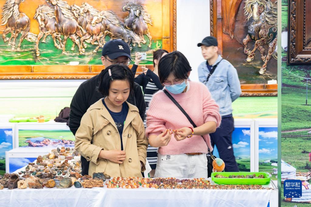 5月7日,在哈爾濱國際會(huì )展體育中心,觀(guān)眾在首屆東北亞文化藝術(shù)創(chuàng )意設計博覽會(huì )上參觀(guān)。