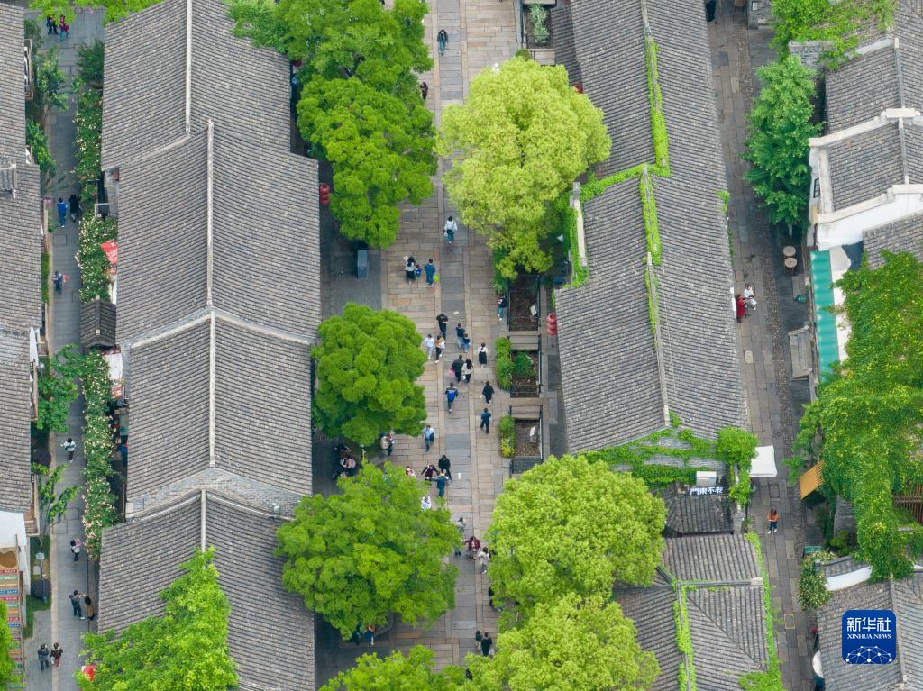 5月7日,游客在南京老門(mén)東景區游玩(無(wú)人機照片)。