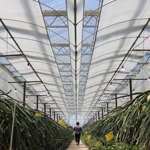5月7日,種植戶(hù)在江蘇省揚州市江都區現代農業(yè)產(chǎn)業(yè)園大棚內觀(guān)察瓜果長(cháng)勢。