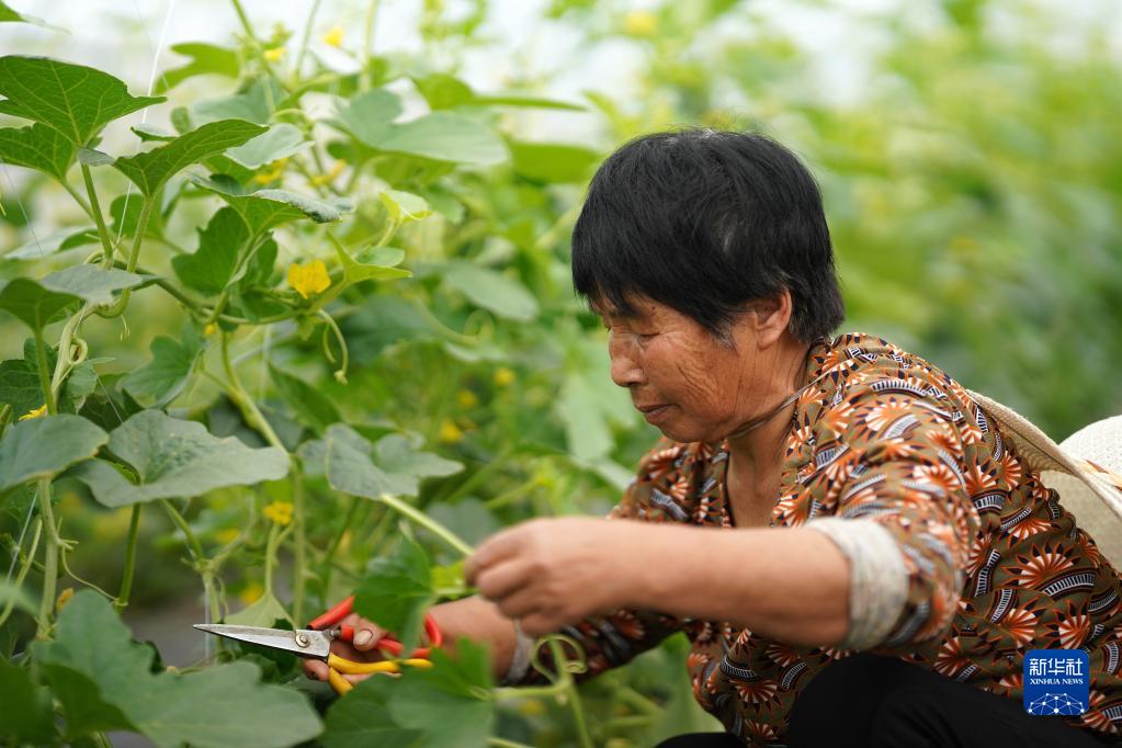5月7日,種植戶(hù)在江蘇省揚州市江都區現代農業(yè)產(chǎn)業(yè)園大棚內進(jìn)行管護。