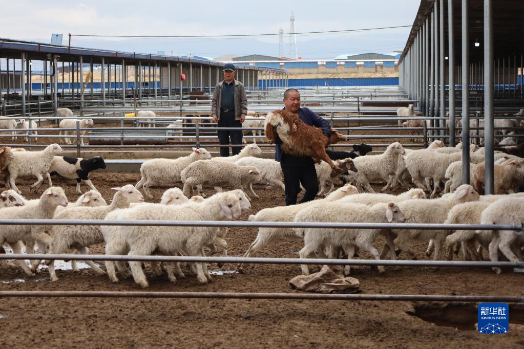 5月7日,在位于古浪縣大靖鎮現代養殖產(chǎn)業(yè)園的春旭農牧專(zhuān)業(yè)合作社,養殖人員捉羊去剪羊毛。