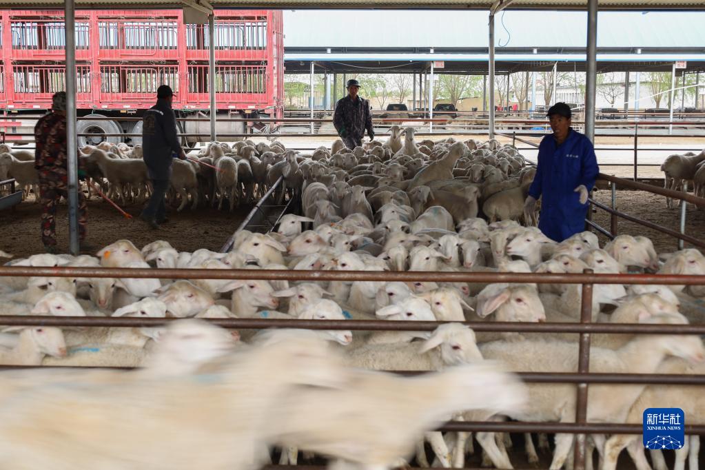 5月7日,在古浪森茂牛羊交易市場(chǎng),工作人員趕羊裝車(chē)。
