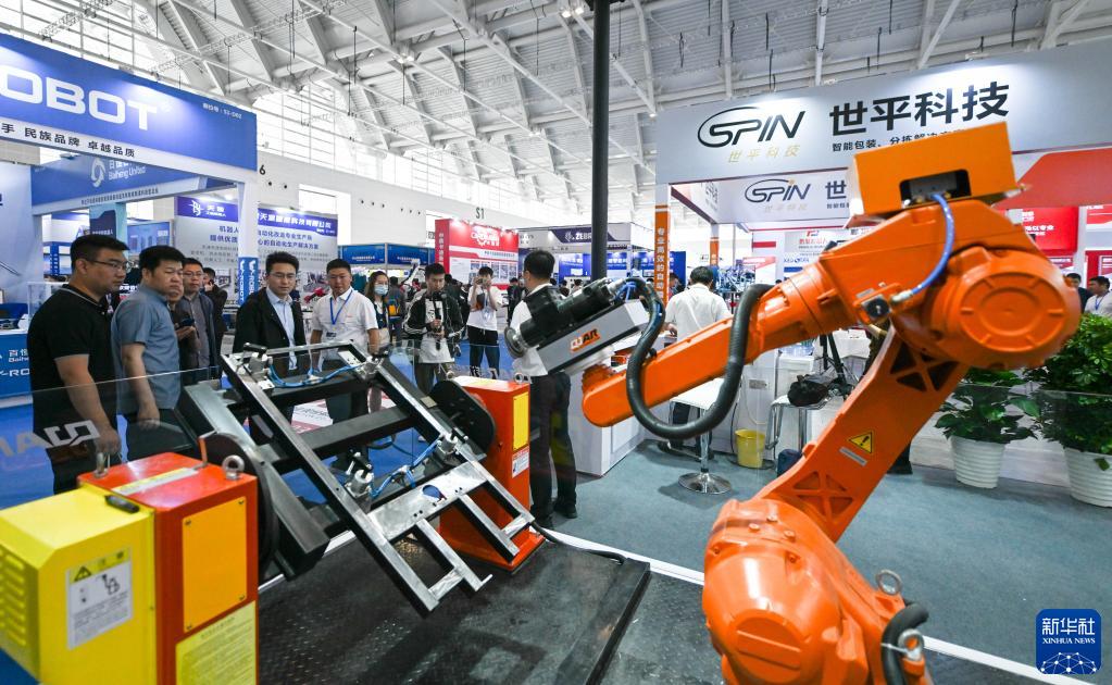 5月8日,在國家會(huì )展中心(天津),觀(guān)眾參觀(guān)展會(huì )上展出的工業(yè)設備。