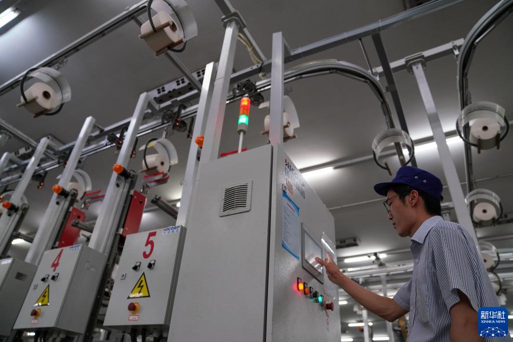5月8日,在無(wú)錫一棉紡織集團揚子江車(chē)間,工人在操作自動(dòng)打包機。