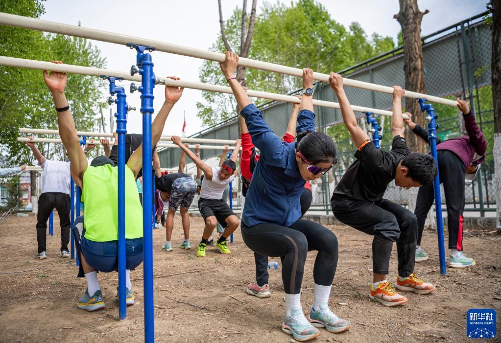 在西藏自治區體育運動(dòng)技術(shù)學(xué)校,玉珍拉姆(前排左一)在訓練后拉伸(4月29日攝)。新華社記者 孫非 攝