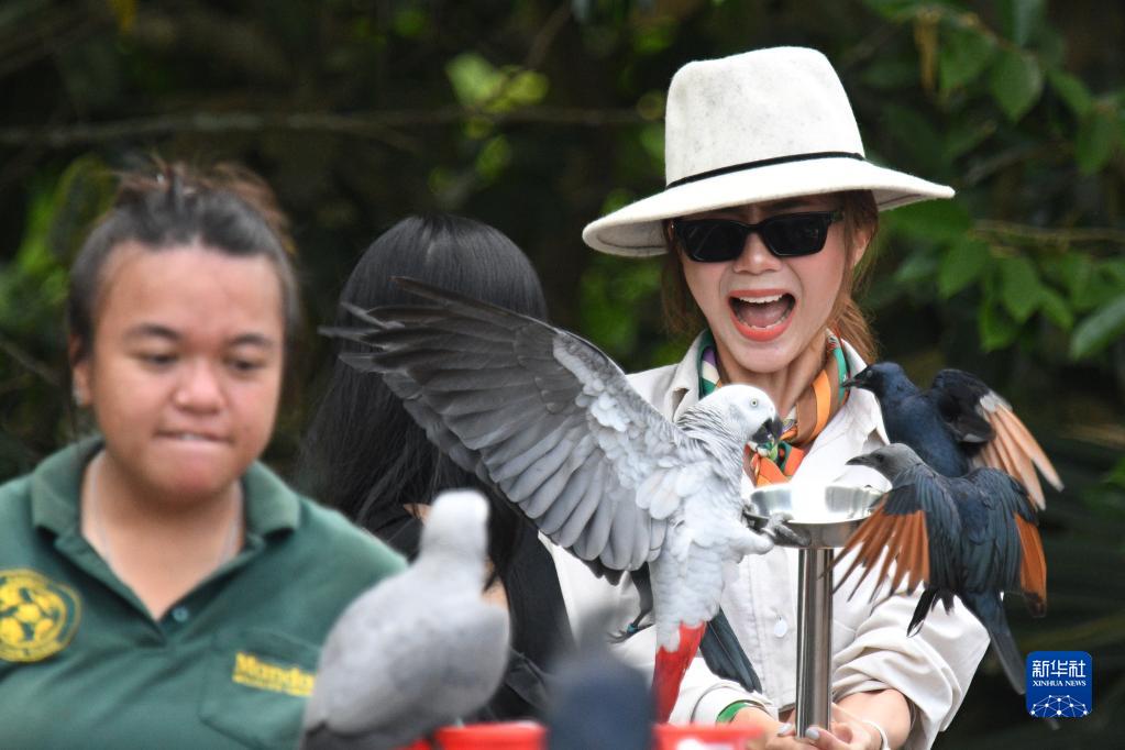 5月8日,觀(guān)眾在新加坡飛禽公園開(kāi)放當天來(lái)到園內喂鳥(niǎo)。