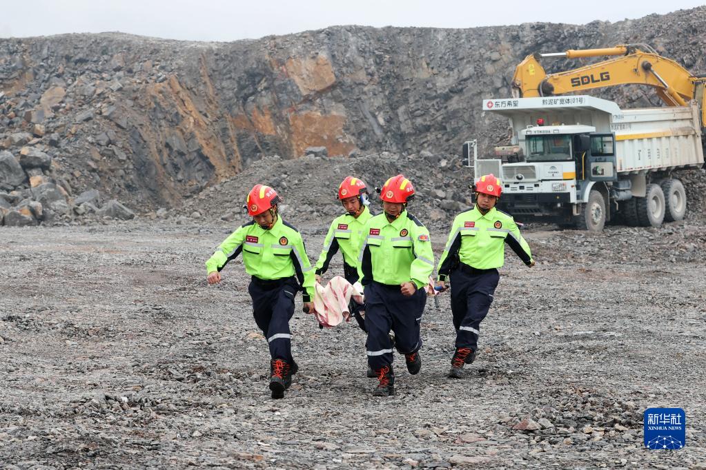 5月9日,在重慶市黔江區一露天非煤礦山演練現場(chǎng),救援隊員轉移“被困人員”。