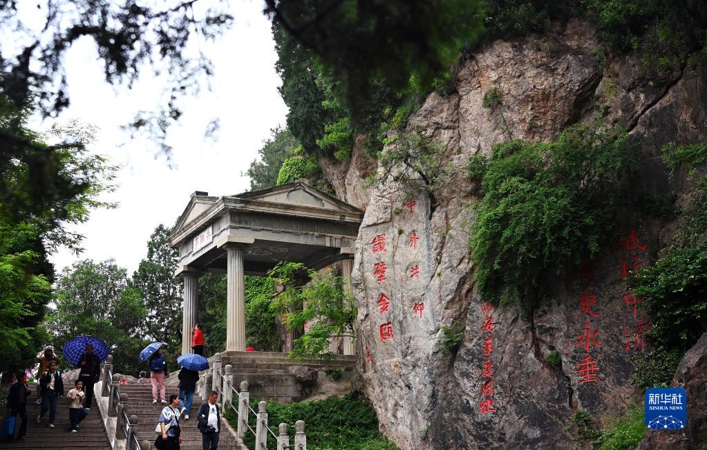 游客在西安華清宮景區內“西安事變”舊址之一兵諫亭游覽參觀(guān)(5月5日攝)。