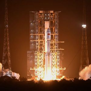5月10日,搭載天舟六號貨運飛船的長(cháng)征七號遙七運載火箭,在我國文昌航天發(fā)射場(chǎng)點(diǎn)火。新華社記者 楊冠宇 攝