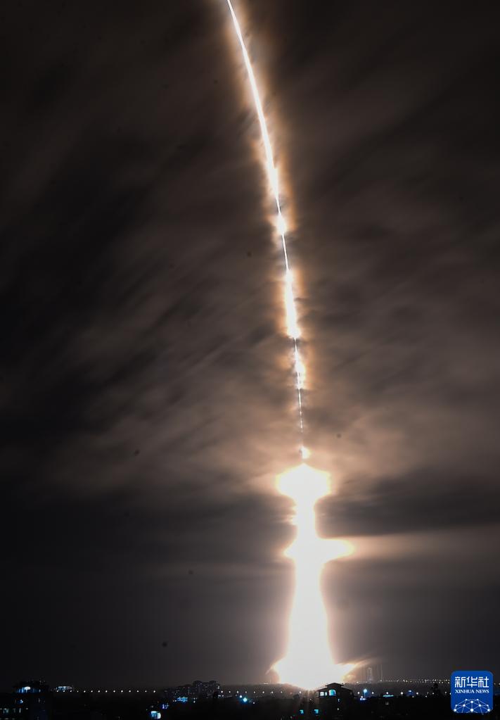 5月10日,搭載天舟六號貨運飛船的長(cháng)征七號遙七運載火箭,在我國文昌航天發(fā)射場(chǎng)點(diǎn)火升空。新華社記者 楊冠宇 攝