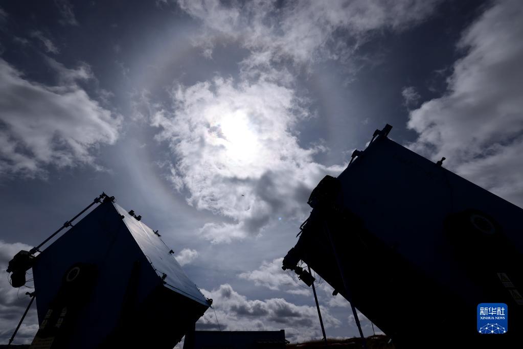 4月22日,高海拔宇宙線(xiàn)觀(guān)測站觀(guān)測基地廣角切倫科夫望遠鏡上空出現日暈。