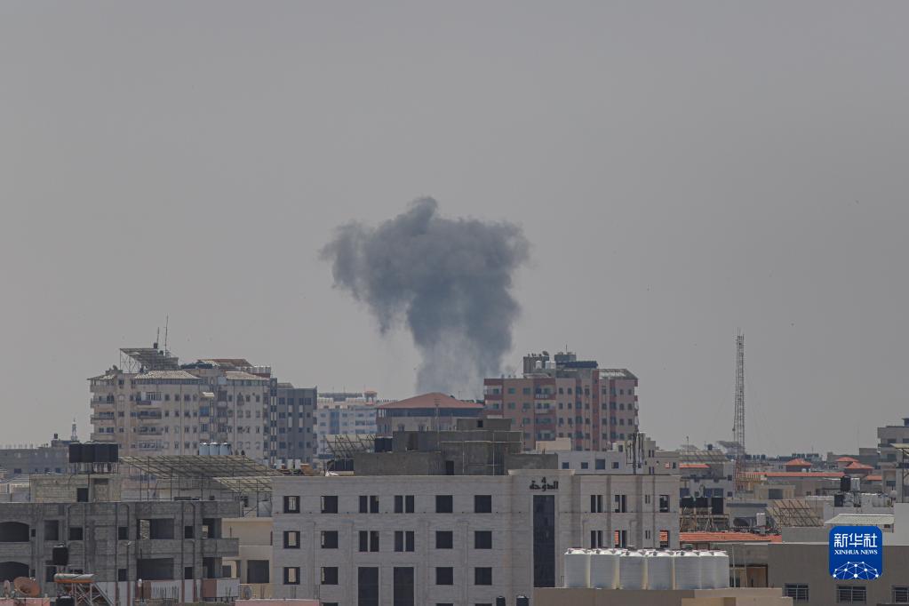5月10日,在加沙城,以色列軍隊的空襲造成爆炸和濃煙。