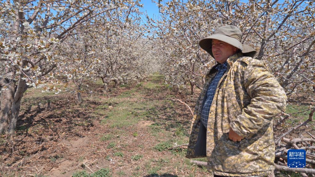 4月24日,在吉爾吉斯斯坦卡拉奧伊村,村民葉夫根尼·雅科夫列夫站在自家栽種的果樹(shù)前。
