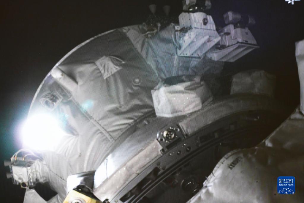 5月11日在北京航天飛行控制中心拍攝的天舟六號貨運飛船向空間站組合體靠攏的畫(huà)面。