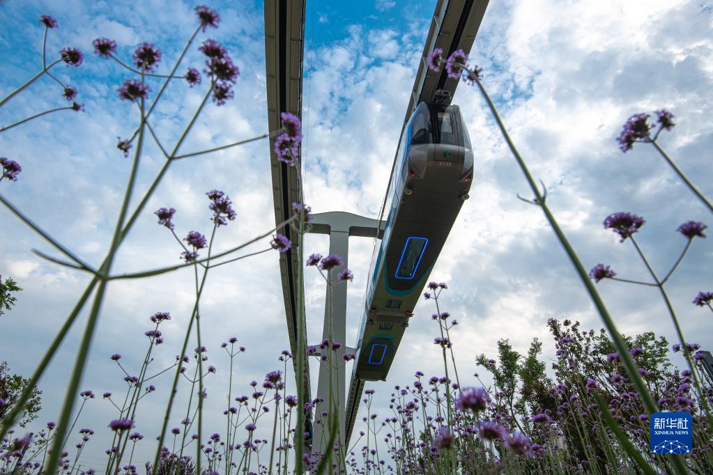 5月9日拍攝的武漢“光谷光子號”空軌列車(chē)。