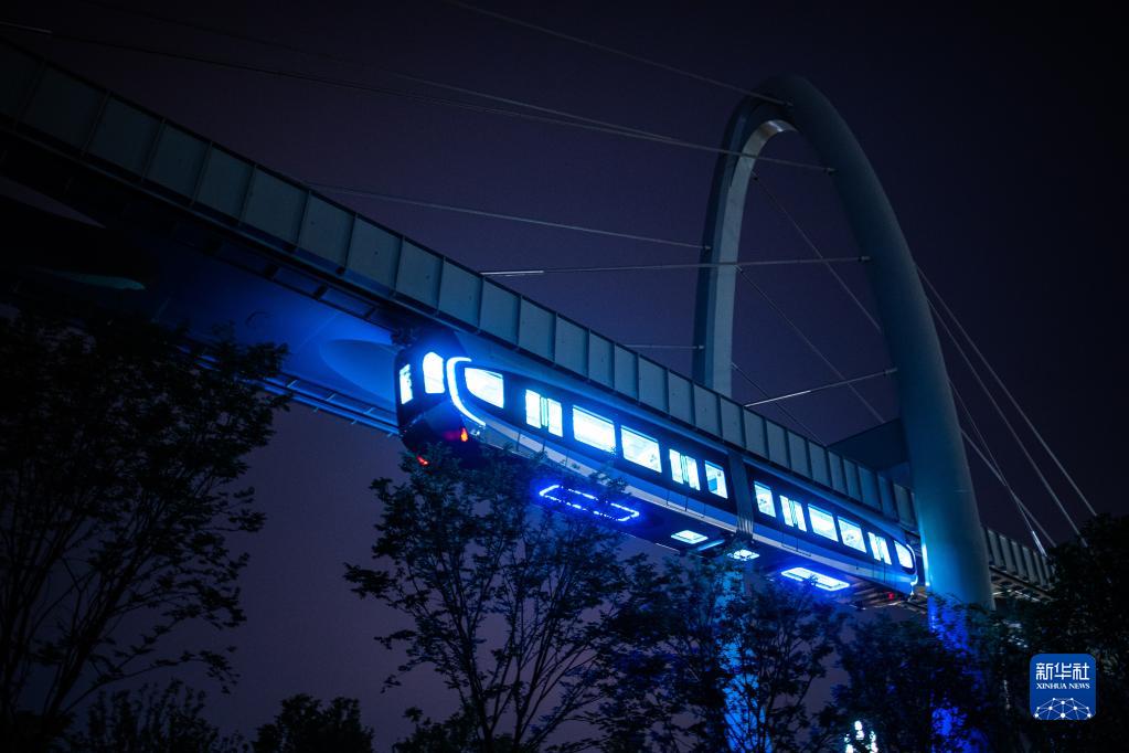 5月9日拍攝的武漢“光谷光子號”空軌列車(chē)。